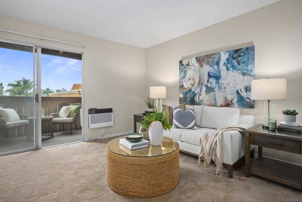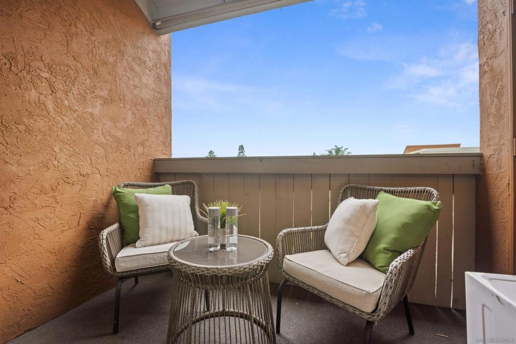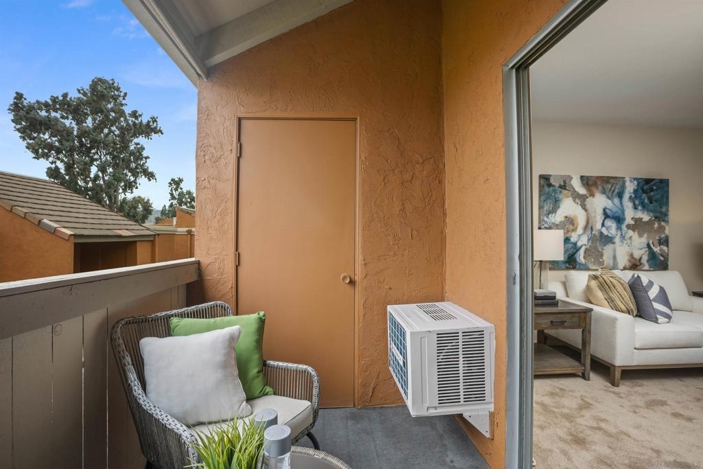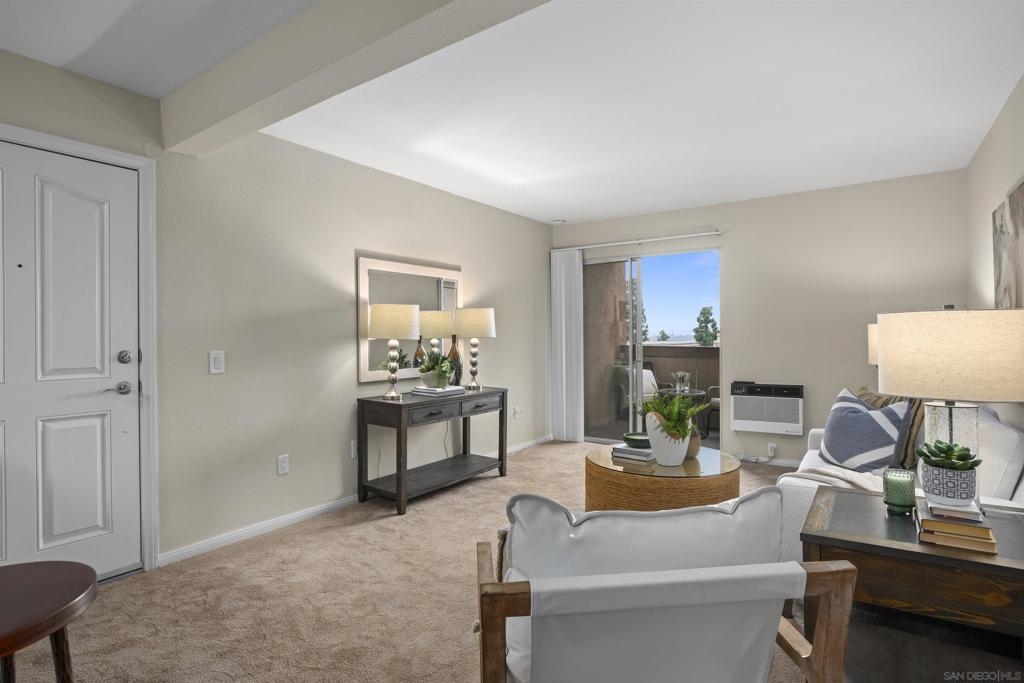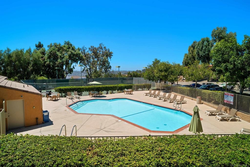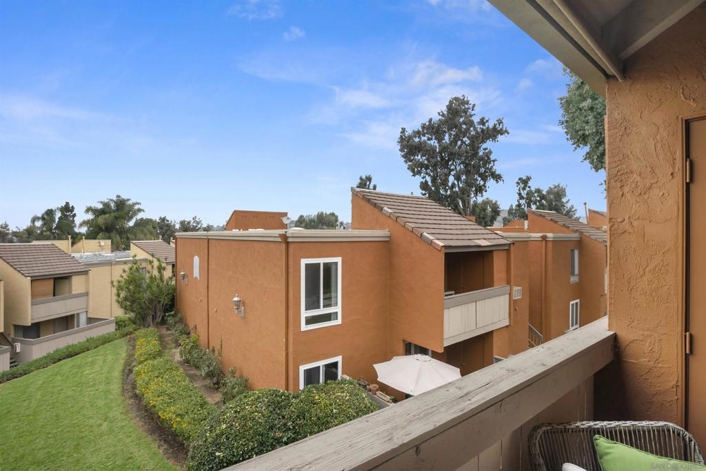 Light, bright & airy! This terrific top floor condo is located in the heart of Del Cerro in the quiet interior of the Mission Trails complex & is one of the rare condos in this area that has in unit laundry & abundant guest parking. Among the many upgrades are new carpet, fresh paint, a newer wall AC unit & updated light fixtures. The kitchen features gorgeous cinnamon cabinets w/ granite countertops. Enjoy the cool breezes & wonderful views from the balcony. Please read the supplement for details on the resort like complex. Mission Trails Villas is located in the heart of Del Cerro; close to SDSU, Snapdragon Stadium and Mission Trails hiking area. The complex features a tennis court, recreation room, weight room, cardio room, swimming pool with a hot tub and abundant guest parking. Resort like living at it's best!