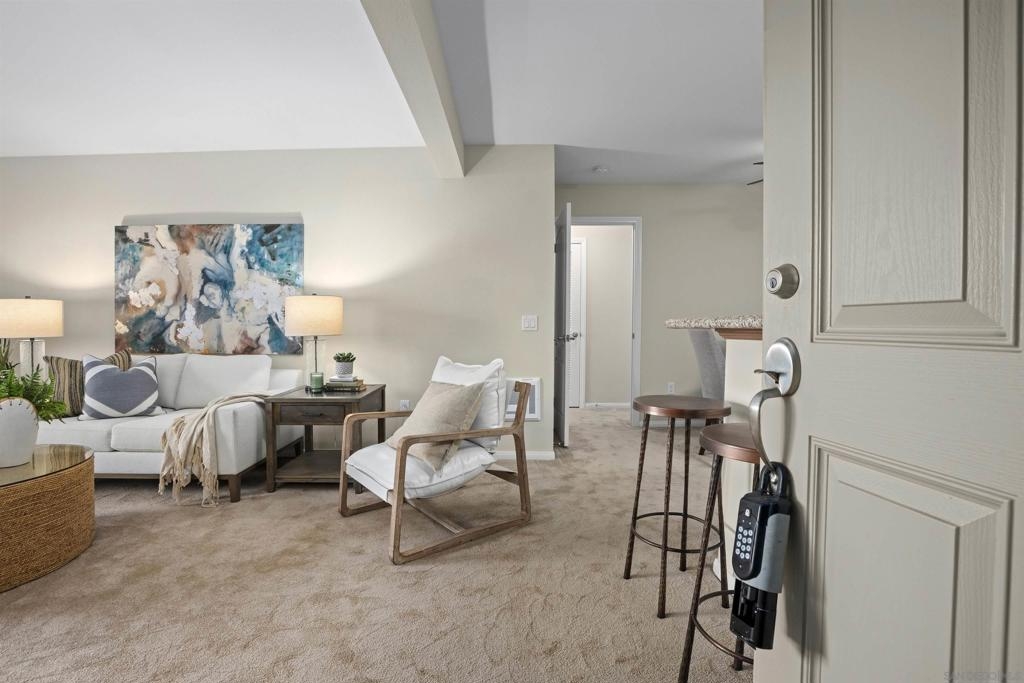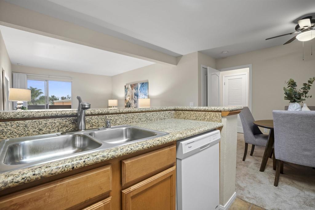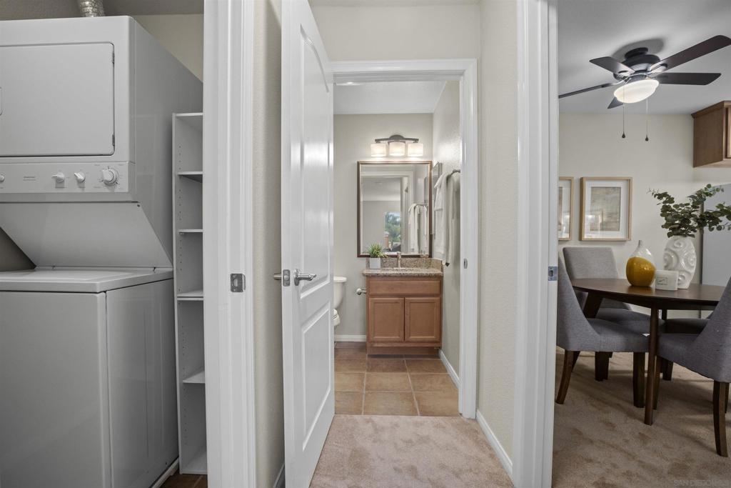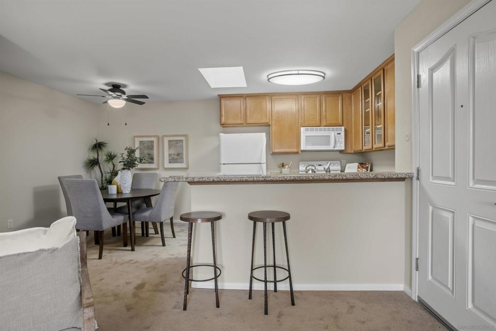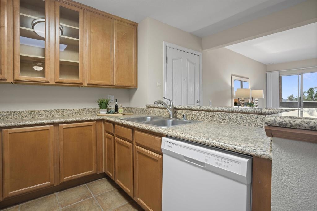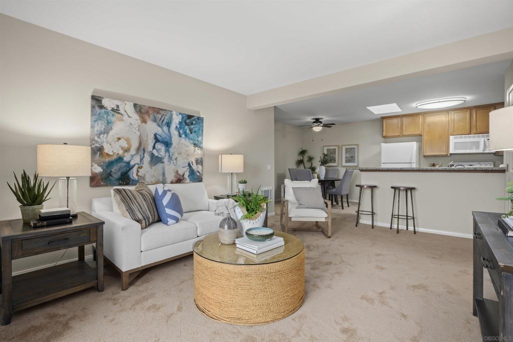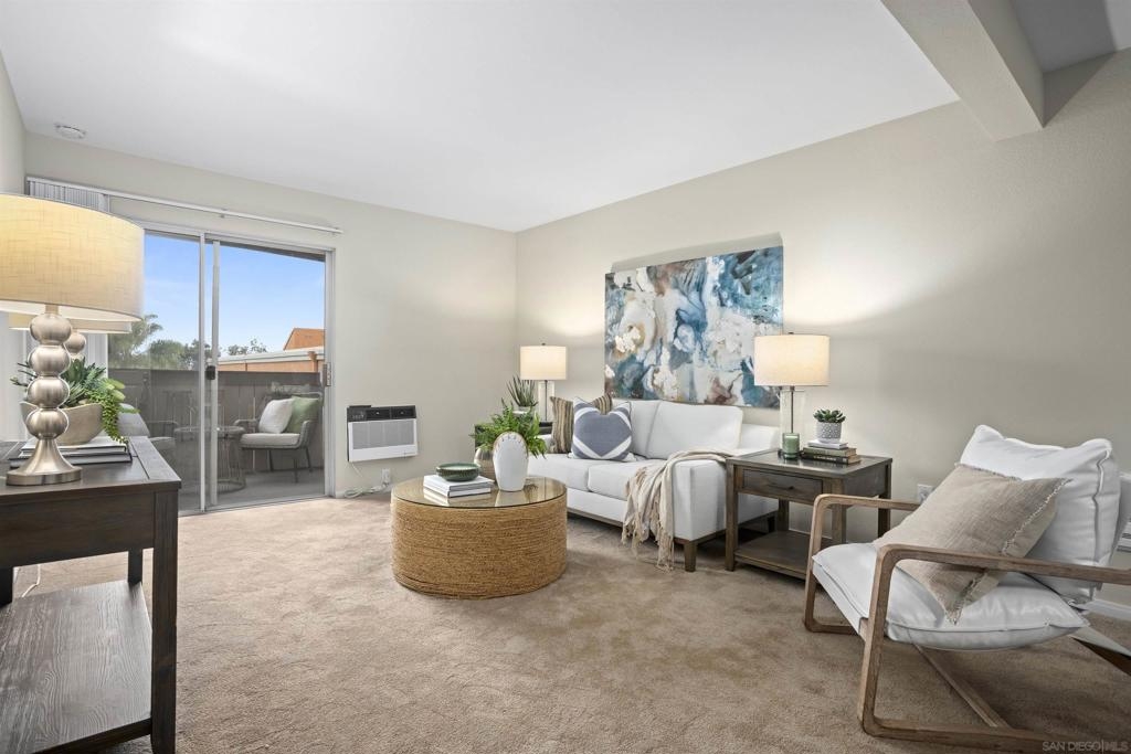 Light, bright & airy! This terrific top floor condo is located in the heart of Del Cerro in the quiet interior of the Mission Trails complex & is one of the rare condos in this area that has in unit laundry & abundant guest parking. Among the many upgrades are new carpet, fresh paint, a newer wall AC unit & updated light fixtures. The kitchen features gorgeous cinnamon cabinets w/ granite countertops. Enjoy the cool breezes & wonderful views from the balcony. Please read the supplement for details on the resort like complex. Mission Trails Villas is located in the heart of Del Cerro; close to SDSU, Snapdragon Stadium and Mission Trails hiking area. The complex features a tennis court, recreation room, weight room, cardio room, swimming pool with a hot tub and abundant guest parking. Resort like living at it's best!