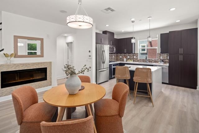 Welcome to one of Origen’s largest and most versatile homes, nestled along a scenic hillside with 2,100 sq. ft. of beautifully designed living space. This four-story residence offers the perfect blend of style, function, and flexibility with three bedrooms and a top-floor loft that can easily serve as a second living area, home office, kids’ playroom, guest space—or anything your lifestyle calls for. Step inside to discover new luxury vinyl plank flooring that adds warmth and elegance throughout the main living spaces. The entry level features a private guest bedroom with a full bathroom and access to the attached two-car garage. On the second level, the open-concept kitchen, living, and dining area is ideal for entertaining, complete with a double oven, built-in wine fridge, and direct access to a private patio with a natural gas hookup—perfect for grilling and outdoor dining. Upstairs, the spacious primary suite offers a peaceful retreat with a cozy seating area, spa-inspired bathroom, and a generous walk-in closet. A third bedroom with its own en-suite bath completes the upper floor. Don’t miss your chance to own this thoughtfully designed home in one of Mission Valley’s most desirable and fast-growing communities. Civita is one of Mission Valley’s most sought-after communities, known for its modern design, walkable layout, and unbeatable central location. Just minutes from the beach, downtown San Diego, and Snapdragon Stadium, Civita offers the perfect blend of city access and relaxed community living—all within a 15-minute drive. This vibrant neighborhood is packed with everyday conveniences and unique local spots. From LA Fitness and a neighborhood vet to casual dining, coffee shops, and boutique retail, everything you need is just steps away. At the heart of it all is Civita Park—a beautiful 14-acre space that features lush gardens, winding trails, basketball courts, amphitheaters, and open lawns for picnics or events. The nearby Civita Recreation Center adds even more with resort-style pools, a state-of-the-art gym, and outdoor gathering spaces perfect for hosting or relaxing. And there’s more to come. The upcoming development along Civita Boulevard—called The Row—will bring even more energy to the community with a vibrant lineup of restaurants, retail, and services. Whether you’re looking for convenience, connection, or simply a modern place to call home, Civita offers a lifestyle that’s hard to match in San Diego.