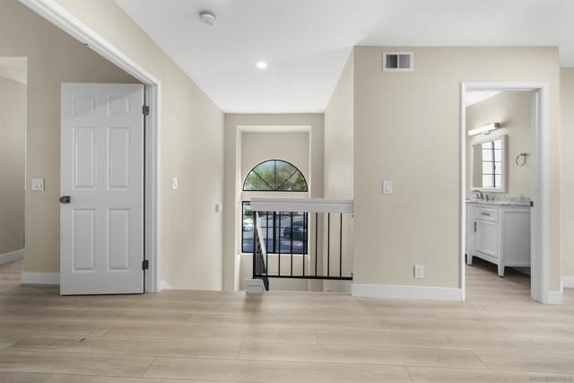 This beautifully remodeled, turnkey tri-level townhome offers every attention to detail in a highly desirable greenbelt setting within the coveted Mariposa community in Del Cerro. Spacious open floor plan at approximately 1,950 sq ft, with vaulted ceilings, fireplace, a stunning new kitchen, new flooring, cabinetry and baths. Lovely, private covered patio overlooking the beautifully maintained greenbelt and open spaces. The primary suite offers a walk-in closet, double vanity, and elegant en-suite bath. Additional highlights include direct access, spacious two-car garage into a versatile bonus space, perfect as a mudroom, storage area, or dedicated laundry room. The Mariposa community features a lovely pool and spa in garden setting with low HOA fees and a prime Del Cerro location near Mission Trails Park. A truly exceptional, immaculate home blending comfort, style, and convenience. Please note: Images 25 through 32 are VIRTUALLY STAGED photos.