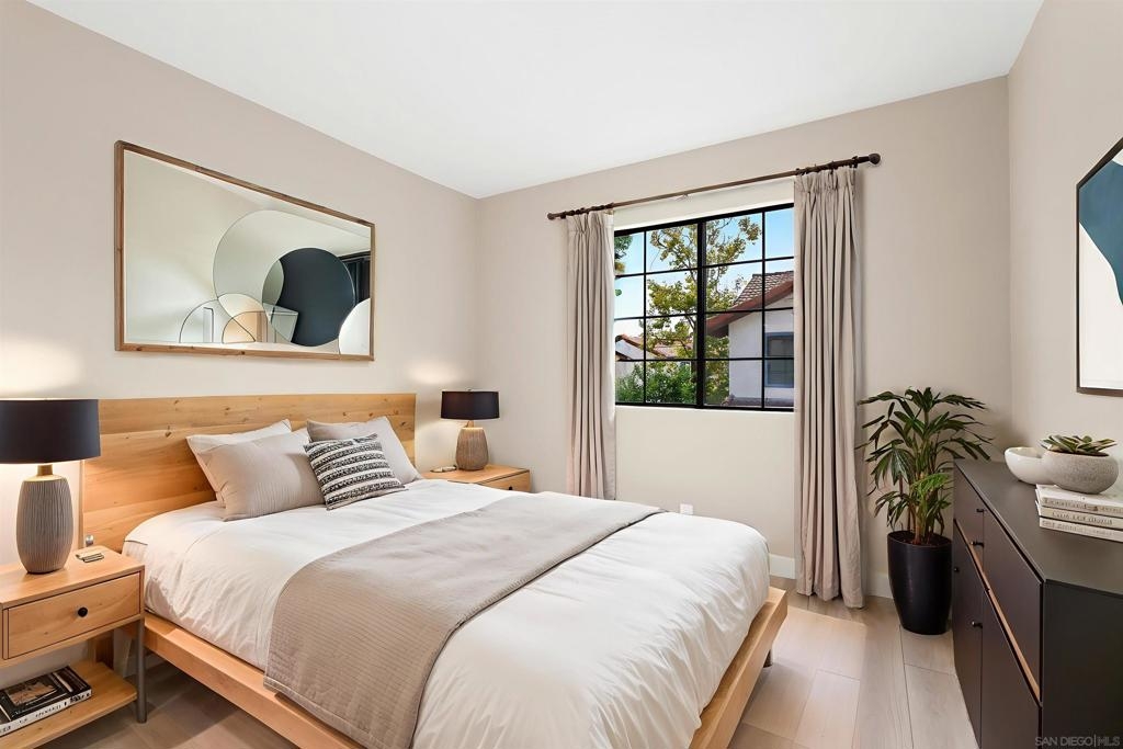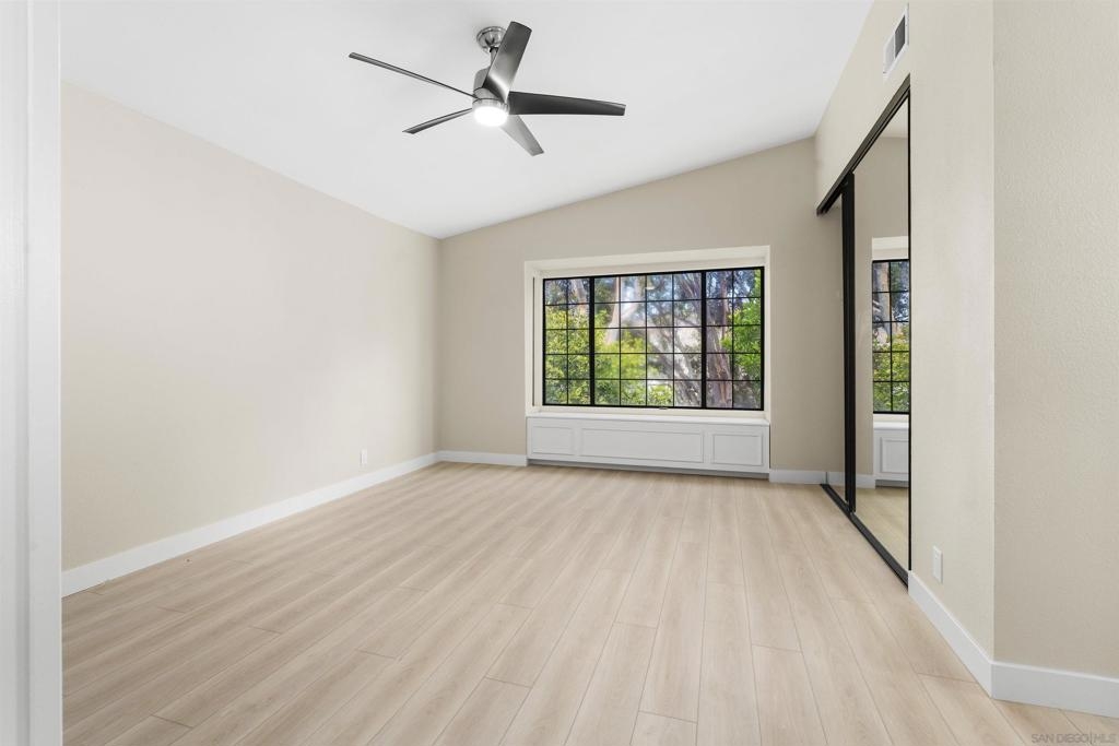 Fully remodeled and well-appointed turnkey home in a highly desirable greenbelt setting within the coveted Mariposa community. Located near Mission Trails Park, lovely view and the most spacious of floor plans with 1,950 sq ft of interior living space, plus outdoor patio and oversized 2-car garage with interior access to home. Soaring vaulted ceilings, fireplace, a stunning new kitchen, new flooring, cabinetry and baths. Lovely, private covered patio overlooking beautifully maintained greenbelt and open spaces.The primary suite includes a walk-in closet (one of two large closets in the suite) and an elegant en-suite bath with double vanity. Separate laundry/mudroom. The Mariposa community features a lovely pool and spa in garden setting with low HOA fees and a prime location. A truly exceptional, immaculate home blending comfort, style, and convenience. Fully remodeled, well-located, turnkey home in the highly desirable Mariposa Community, with fireplace, 2 car garage, vaulted ceilings, community pool and views!