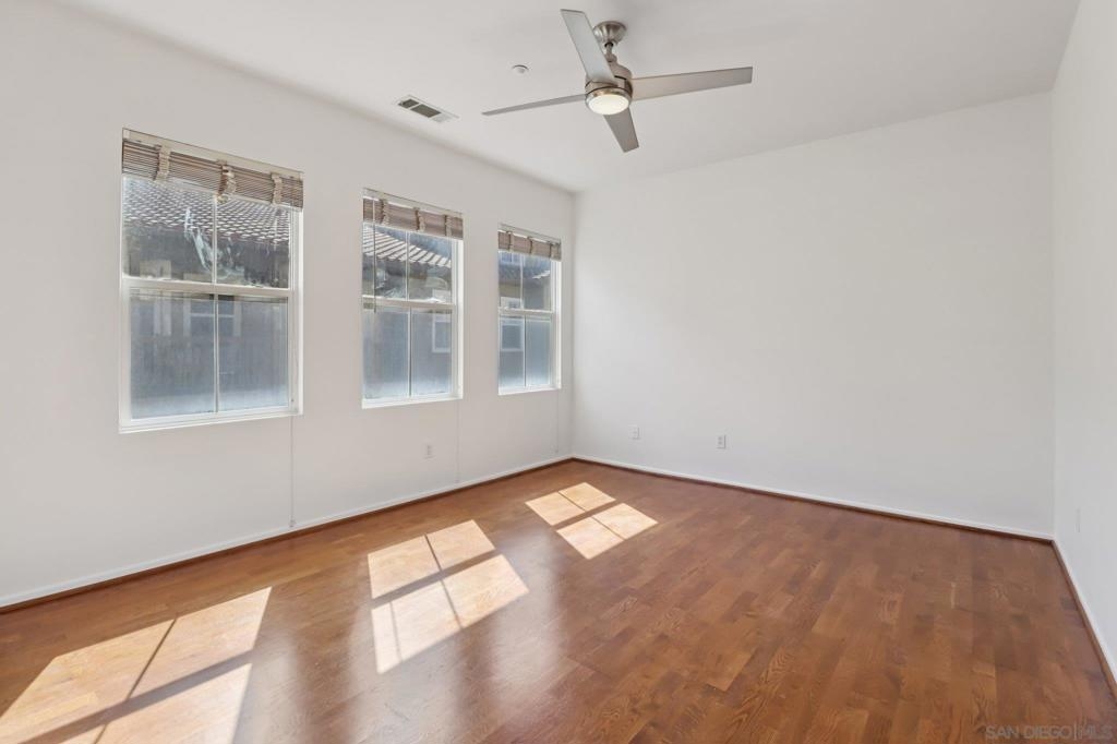 Located in the desirable Torrey Highlands community of Rancho Peñasquitos, this spacious end-unit condo at 7895 Via Montebello #1 offers 1,295 square feet of comfortable living space and is vacant and priced to sell. With 1 bedroom, 1.5 bathrooms, and a versatile loft area, the home lives much larger than a typical one-bedroom and provides flexible space that can easily function as a home office, guest area, or second sleeping space. The bright and freshly painted open layout features soaring 2-story ceilings and large windows that fill the living areas with natural light. The living room flows seamlessly into the dining area and kitchen, creating an inviting space for everyday living or entertaining. The spacious primary suite includes generous closet space and an en-suite bathroom, while the loft features an additional half bath that adds convenience for guests. Additional highlights include an attached 1-car garage, assigned parking, and access to a community pool. As an end unit, the home enjoys added privacy and a quiet setting within the community. Ideally located near shopping, dining, parks, and major commuting routes, the property is also within the highly regarded Poway Unified School District and close to Westview High School and Mesa Verde Middle School. Whether you're a first-time buyer, investor, or someone looking for low-maintenance living in North County San Diego, this Torrey Highlands home offers exceptional value in a prime location.