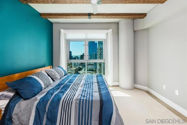 Enjoy luxury living at its finest atop Cortez Hill. Absolutely stunning condo w/Panoramic views of bay, bridge, city, & mountains from every room! Expansive open concept, 10ft beam ceilings & floor to ceiling windows w/ custom electronic shades. Professionally decorated & completely remodeled to perfection w/high end finishes. Chefs dream kitchen complete with Thermador appliances, wine fridge, copper trough sink & marble countertops. Custom designed his & hers luxury closets, wood floors & custom lighting. Chandelier in living room & 2nd bedroom/office wall system, both from Restoration Hardware will convey. Assigned storage unit. Steps to restaurants, Balboa Park, Little Italy, Bankers Hill, Hillcrest & 10 minutes to the airport. PRICED TO SELL!!