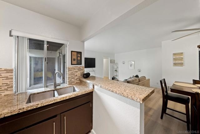 Welcome to this centrally located, FHA and VA approved condo in the heart of Mission Valley. This beautifully updated ground-floor unit offers a spacious 1-bedroom layout with modern touches throughout. Enjoy a remodeled kitchen, stylish updated flooring, and a generous primary suite with plenty of space for a home office or bonus room. Step out to your oversized private patio through sliding glass doors from both the living room and bedroom - perfect for morning coffee or evening relaxation. Tucked away in a quiet, private location in the complex and in close proximity to the pool and laundry area. Park Villas South amenities include two pools, two spas, and BBQ areas for residents to enjoy. Located alongside the scenic San Diego River with walking trails and just minutes from top dining, shopping, freeways, beaches, downtown, and all that Mission Valley has to offer.