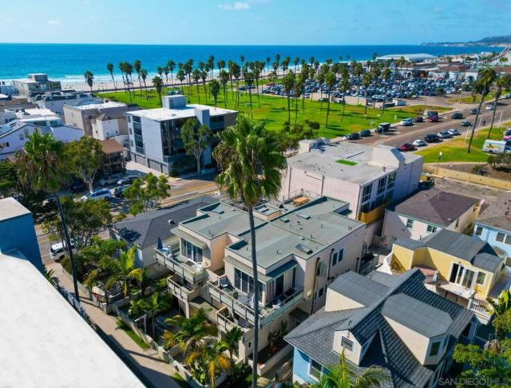 Rare South Mission where beachside living meets modern style in this rare 3/3 w/ en suites. High ceiling w/ a wrap around balcony off great room, 1 balcony off master and large, front private patio. This exceptional boutique 4-unit complex, just steps away from the pristine sands and perfectly located on beautiful court w/ the perfect combination of indoor-outdoor living. This prime SW corner is flooded with light, high ceilings w/skylight, spacious open kitchen & great room just perfect for entertaining. Large front private patio, large 2 car garage & in unit washer/dryer. A tranquil retreat overlooking overlooking lush landscaping. *Seller says, " BRING ALL OFFERS" wants this SOLD!*Great for 1031 exchange / Second Home *CONT'D* The wraparound deck and private gated patio provide perfect spaces for relaxing or entertaining. The modern kitchen boasts granite countertops and stainless steel appliances including new refrigerator, new dryer and new dishwasher, while each of the three bedrooms offers privacy and comfort with new carpets. The upstairs primary suite includes its own south-facing deck and a skylit en-suite bath. A second upstairs bedroom also features an en-suite, and the ground-level bedroom opens to a private patio through sliding glass doors. Additional highlights include a 2-car garage with new opener, new tankless water heater and the unbeatable lifestyle of South Mission Beach, where wider lots and lower density create a more livable, open atmosphere. Exceptionally well-priced to sell—don’t miss your chance to own this beachside gem!