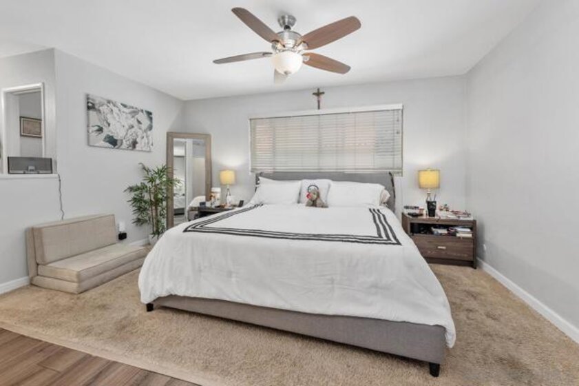 Rarely available spacious 3br/2ba upstairs corner unit with private entry and balcony. Lots of upgrades including quartz counters, gorgeous tile, stainless appliances, ceiling fans, newer kitchen, baths, flooring, fixtures & finishes. Casa Dorada complex includes pool, spa, BBQs. clubhouse & laundry. 2 parking spots are included with unit. Close to restaurants, shopping, schools & freeways.