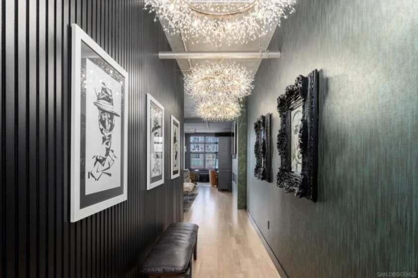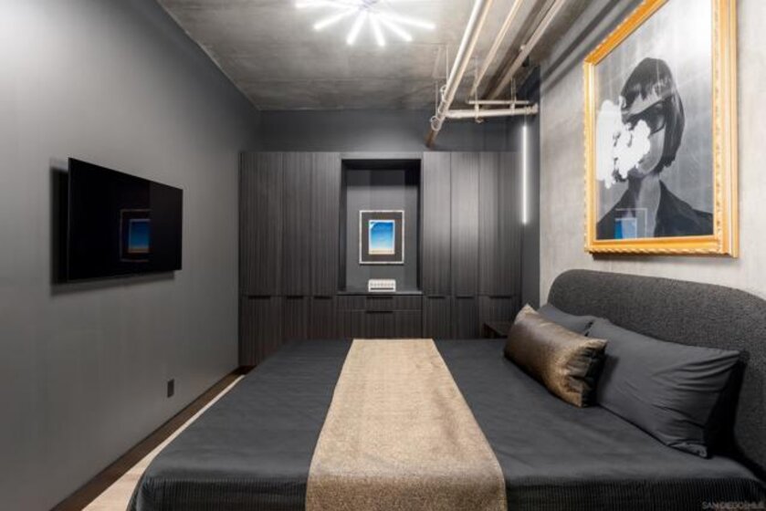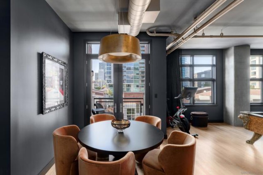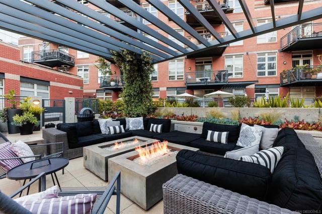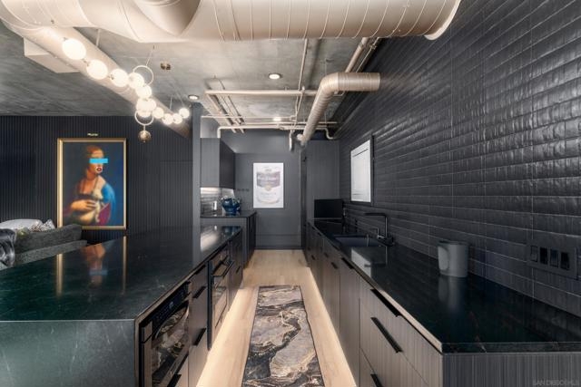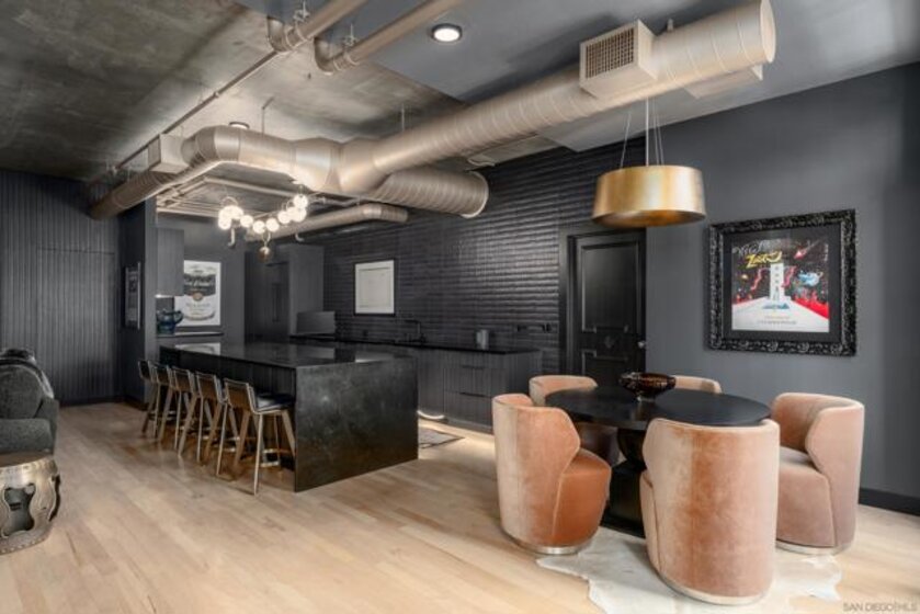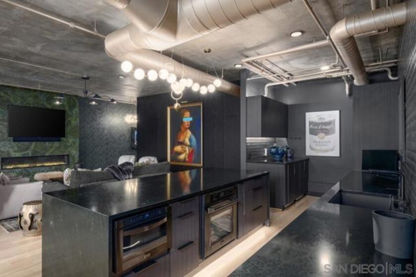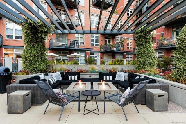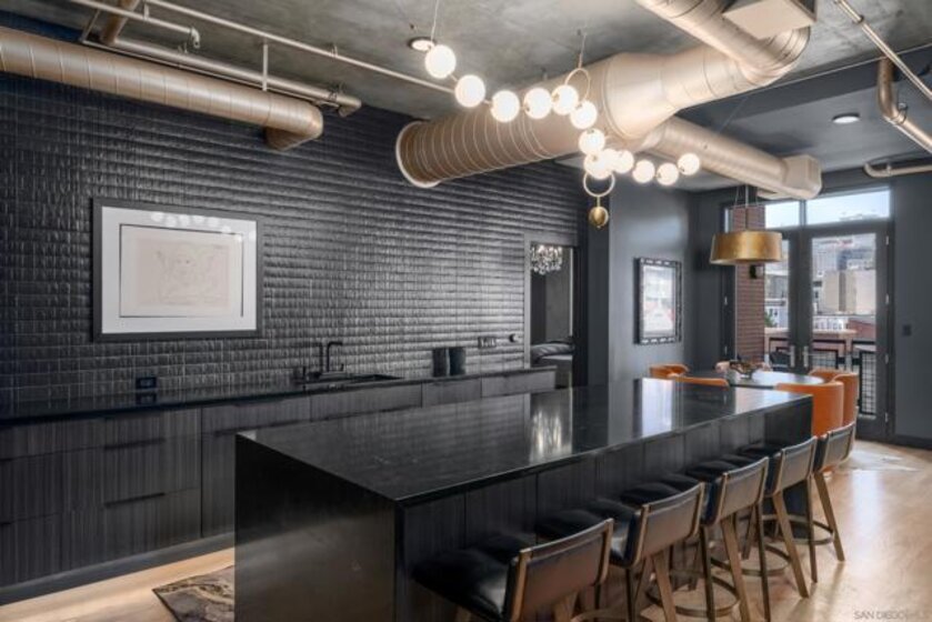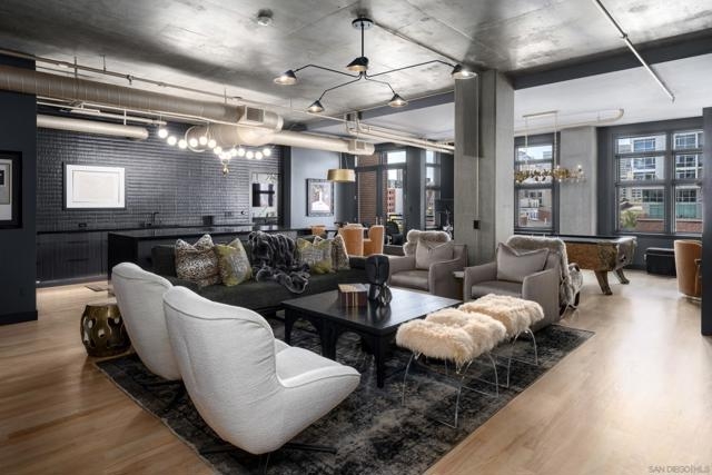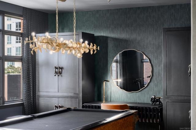 A design masterpiece, this impeccably reimagined residence in Parkloft has been thoughtfully transformed to offer an elevated living experience. Every detail has been curated with intention and artistry. Soaring 10-foot ceilings with exposed ductwork, capture the essence of industrial-chic loft living. The dramatic custom lighting installations create ambiance and architectural intrigue. A brand new chef’s kitchen of the highest caliber, showcases bespoke cabinetry, waterfall-edge soapstone countertops, premium ZLINE appliances, and an invisible induction cooktop. A stunning fireplace wrapped in marble anchors the living space with elegance. Rich architectural wall paneling throughout the residence adds warmth, character, and a tailored finish. An additional bedroom was seamlessly integrated to enhance versatility and function. The home now features two spacious suites, each positioned on opposite ends of the residence to ensure optimal privacy. Both offer luxurious en-suite baths with spa-inspired details, refined materials and premium designer fixtures, creating a harmonious blend of comfort and sophistication. The primary suite features a fully customized walk-in closet designed for both form and function. The expansive black Pella windows with beautiful window treatments open up to north-facing city views. The private terrace is equipped with gas hookups, perfect for alfresco dining and entertaining. This rare offering blends timeless loft style with modern comfort; a must-see for the discerning buyer. Parkloft residents enjoy a well appointed fitness center; 24-hour concierge and security services; on-site management ensuring exceptional care and convenience; and a serene landscaped courtyard with ambient fire features, BBQ’s and a club house with a kitchenette which opens up to a large outdoor dining table and sets the stage for effortless outdoor entertaining. The Ballpark District spans 22 blocks surrounding Petco Park, where the Padres-affiliated Ballpark District Community Partnership provides daily clean-up services to maintain the area.