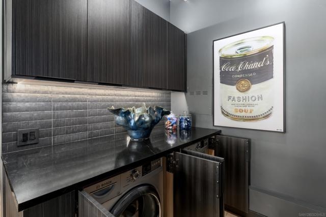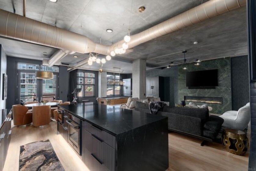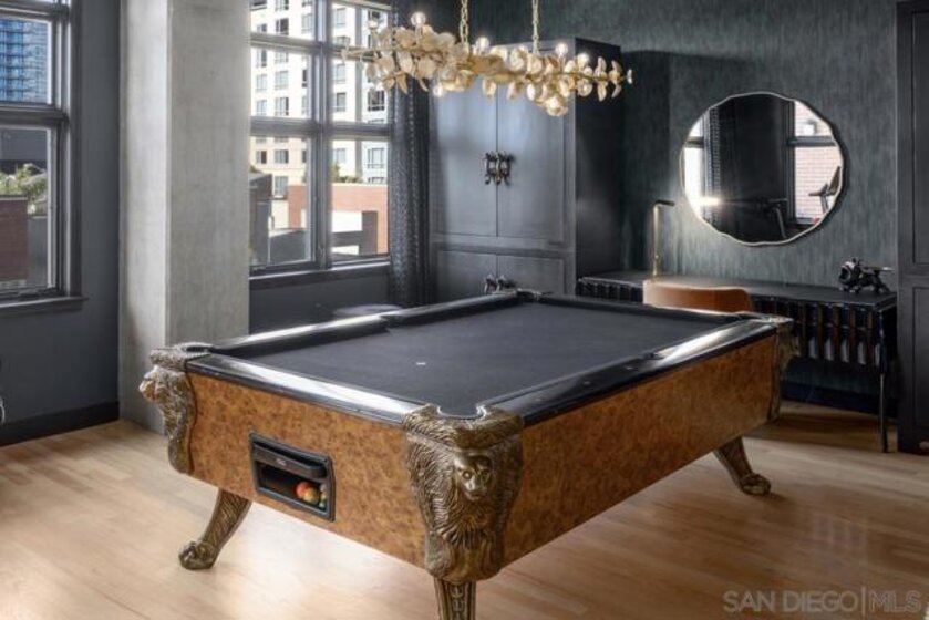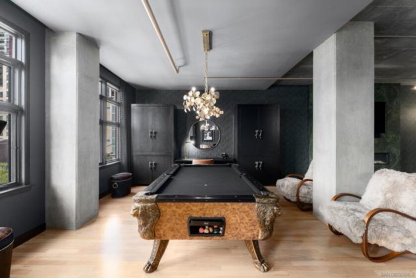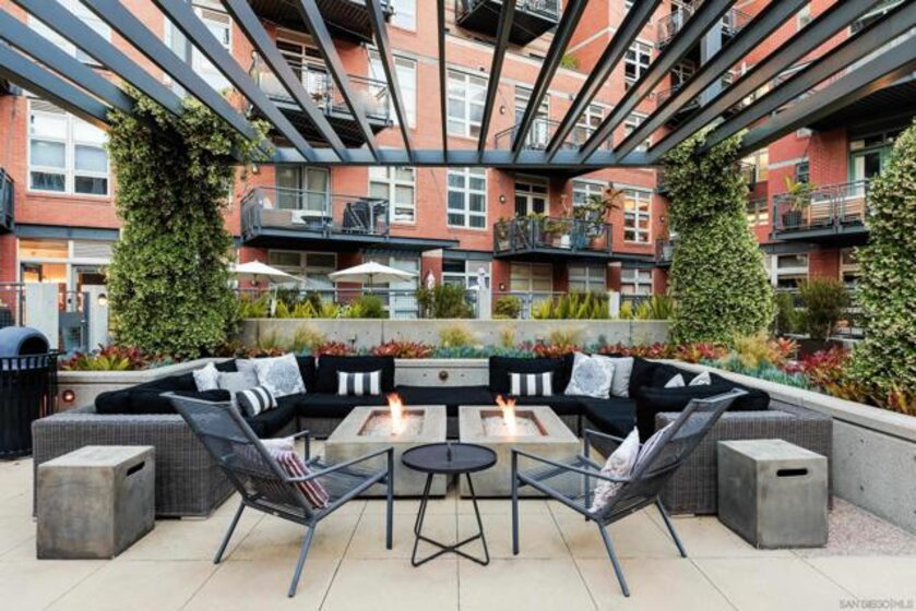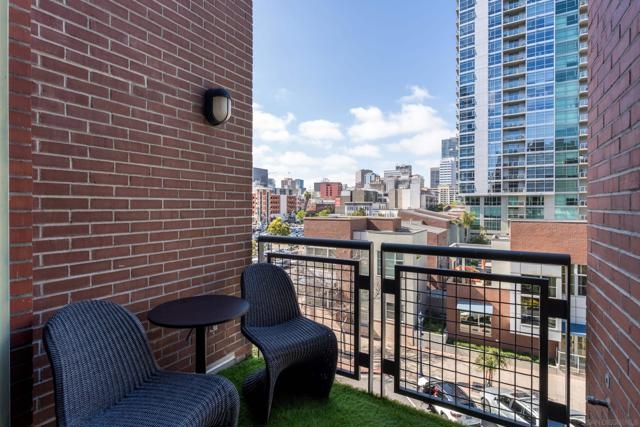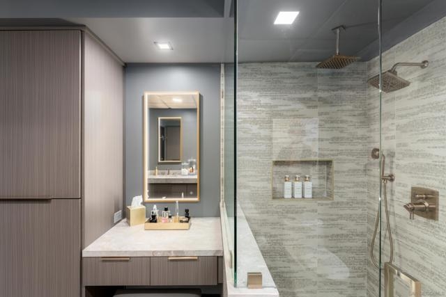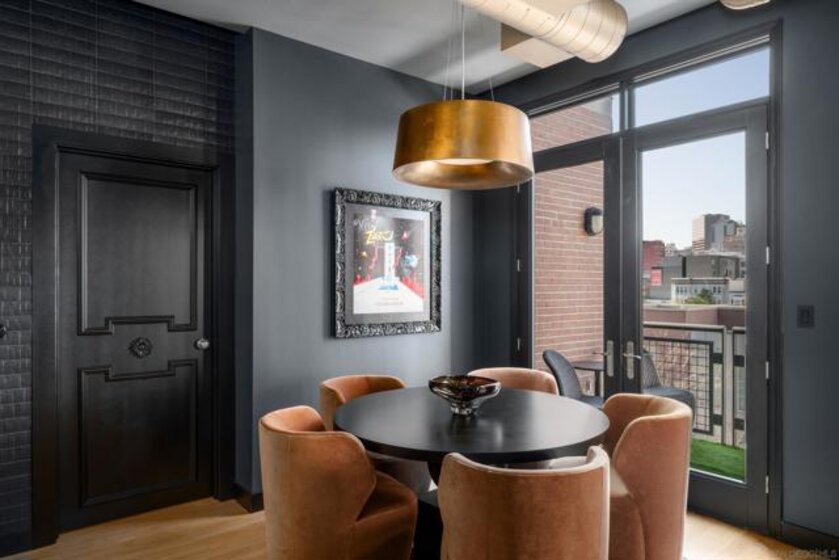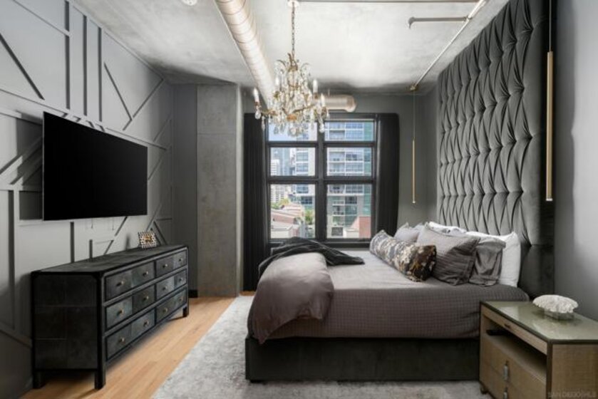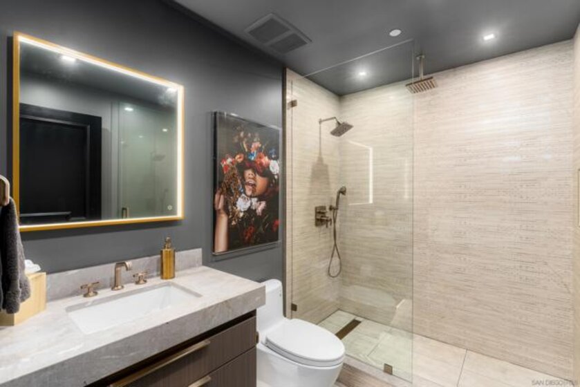 A design masterpiece, this impeccably reimagined residence in Parkloft has been thoughtfully transformed to offer an elevated living experience. Every detail has been curated with intention and artistry. Soaring 10-foot ceilings with exposed ductwork, capture the essence of industrial-chic loft living. The dramatic custom lighting installations create ambiance and architectural intrigue. A brand new chef’s kitchen of the highest caliber, showcases bespoke cabinetry, waterfall-edge soapstone countertops, premium ZLINE appliances, and an invisible induction cooktop. A stunning fireplace wrapped in marble anchors the living space with elegance. Rich architectural wall paneling throughout the residence adds warmth, character, and a tailored finish. An additional bedroom was seamlessly integrated to enhance versatility and function. The home now features two spacious suites, each positioned on opposite ends of the residence to ensure optimal privacy. Both offer luxurious en-suite baths with spa-inspired details, refined materials and premium designer fixtures, creating a harmonious blend of comfort and sophistication. The primary suite features a fully customized walk-in closet designed for both form and function. The expansive black Pella windows with beautiful window treatments open up to north-facing city views. The private terrace is equipped with gas hookups, perfect for alfresco dining and entertaining. This rare offering blends timeless loft style with modern comfort; a must-see for the discerning buyer. Parkloft residents enjoy a well appointed fitness center; 24-hour concierge and security services; on-site management ensuring exceptional care and convenience; and a serene landscaped courtyard with ambient fire features, BBQ’s and a club house with a kitchenette which opens up to a large outdoor dining table and sets the stage for effortless outdoor entertaining. The Ballpark District spans 22 blocks surrounding Petco Park, where the Padres-affiliated Ballpark District Community Partnership provides daily clean-up services to maintain the area.