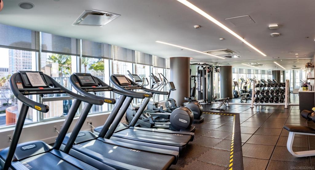 This exceptional southwest-facing 2bed2bath 1556sf residence at iconic Pacific Gate offers panoramic views of the downtown skyline, Pacific Ocean and Coronado Bridge. Floor-to-ceiling glass fills the open floor plan with natural light and opens to a spacious private balcony ideal for sunset views. Designer finishes include wood floors, custom built-ins, wine refrigerator, and a chef’s kitchen with Wolf, Sub-Zero, and Miele appliances. Enjoy world-class amenities including 24-hour concierge, luxury car fleet, EV charging, rooftop pool and cabanas, screening room, and pet retreat—offering the ultimate downtown San Diego luxury lifestyle. From the moment you enter, abundant natural light, designer accents, and breathtaking vistas create an unforgettable first impression. The open-concept layout features a spacious living and dining area that flows seamlessly to a large private balcony—perfect for enjoying spectacular sunsets and the energy of the city below. The thoughtfully designed split floor plan offers optimal privacy, ideal for guests or a sophisticated home office. This turnkey residence is the perfect blend of refined comfort, architectural excellence, and world-class convenience—offering a rare opportunity to live above it all in downtown San Diego’s most prestigious address.