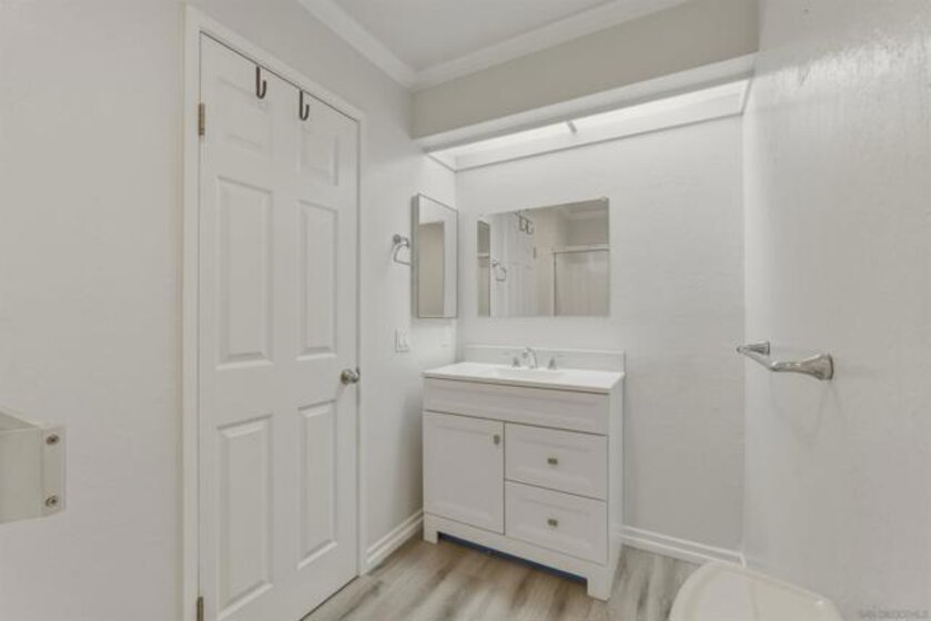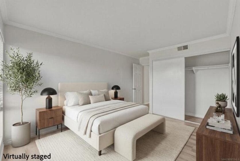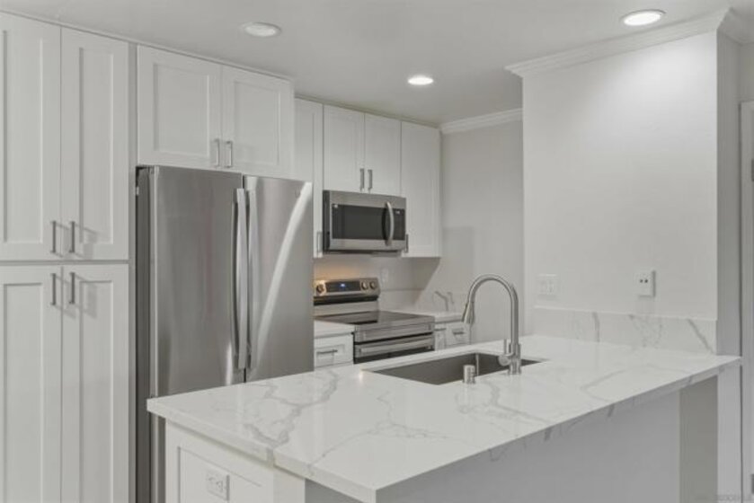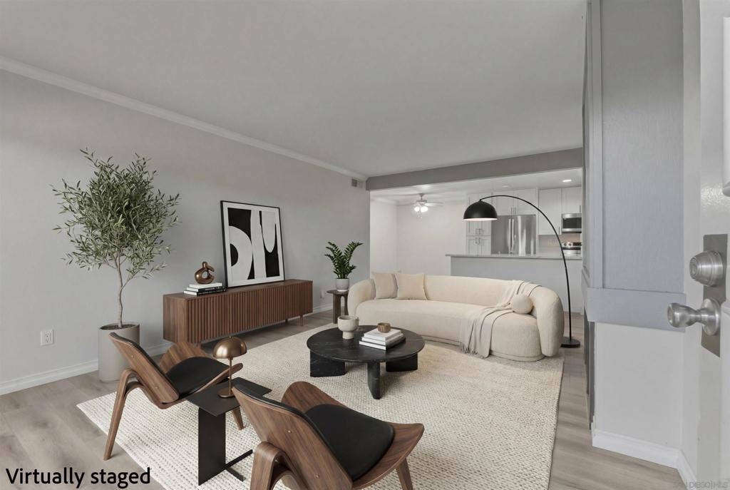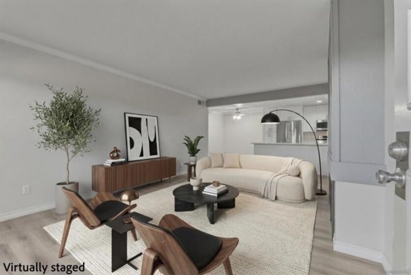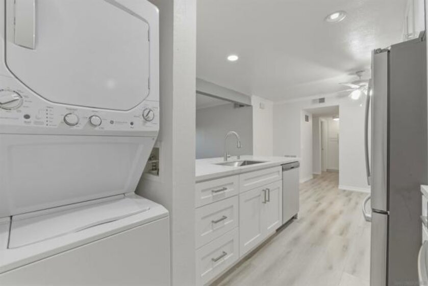 Beautifully renovated single-story, ground-floor 2 bed, 2 bath home in the heart of Serra Mesa. Almost completely renovated in July 2025, this spacious home features cozy fireplace, central AC, new luxury vinyl plank flooring, fresh paint throughout, and a stunning upgraded kitchen with soft-close cabinets, quartz countertops, pull-out spice rack, and a new faucet. The smart WiFi-enabled range offers voice control, a 6.3 cu. ft. oven, and rapid boil burner. Brand-new Energy Star dishwasher (ultra-quiet at 55 decibels) and large-capacity refrigerator included. Enjoy the convenience of in-unit stackable washer and dryer, a private patio, and two assigned parking spaces (one covered, one uncovered). Community amenities include two pools to enjoy! Stylish, turnkey, and perfectly located—this is 'the one' you’ve been waiting for. Don’t miss your chance to make it yours!