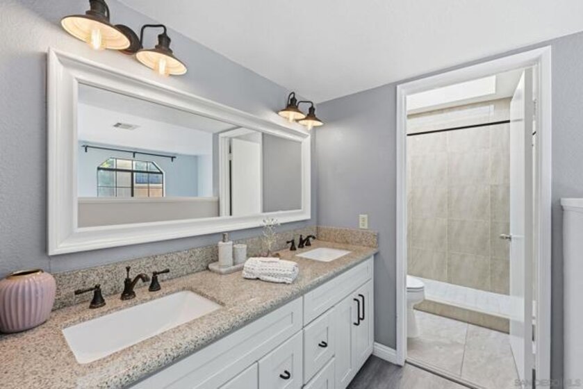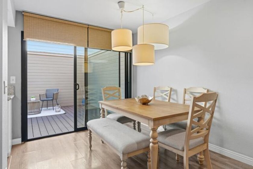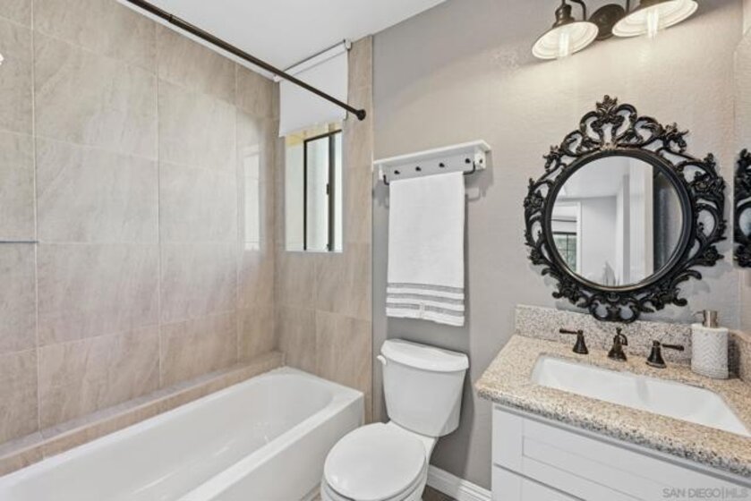 This 2B/2.5B beautiful, cozy and quiet townhome located in the desirable Devonshire Woods community in the heart of UTC. Feels like a hidden gem in a lively city as you're surrounded with high rises. One block to UTC mall, restaurants, entertainment & so much more. Luxury laminate floors throughout, granite countertops with refreshing white cabinets & stainless steel appliances. Large private patio off living space, perfect for entertaining & dining al fresco. Spacious light & bright master bedroom w/ en-suite bathroom, dual sinks, skylights & balcony with greenery view. 2 car attached garage w/ lots of storage space. Community offers pool, spa, community garden.