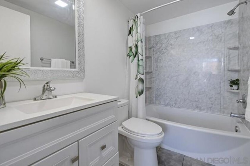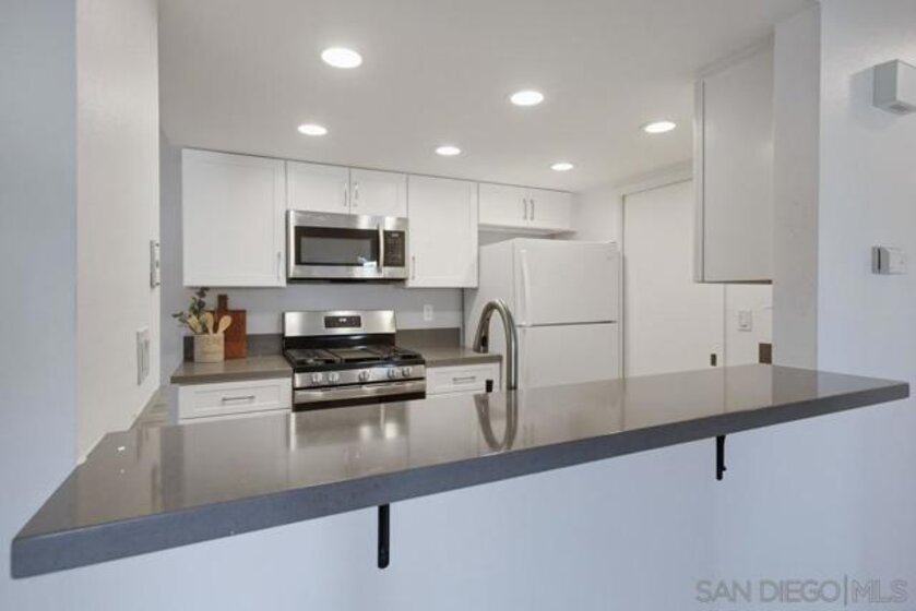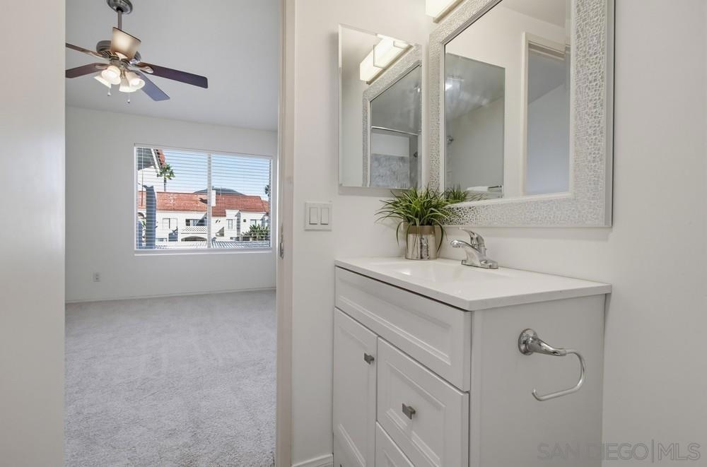 Light, bright, and move in ready top floor two bedroom, two bath home in Casablanca, one of Rancho Peñasquitos’ most desirable communities. This beautifully refreshed unit features brand new carpet throughout and a stylish updated kitchen with newer cabinets, solid surface countertops, stainless steel appliances, and recessed lighting. The spacious living room is filled with natural light, highlighted by a stunning fireplace, and opens to a generously sized private balcony with an additional storage closet. The primary bedroom offers vaulted ceilings, a refreshed en suite bath with newer vanity, and a large walk in closet. The secondary bedroom and bathroom both provide excellent storage space. Enjoy peaceful northern mountain views, one covered parking space with built in cabinets, plus an additional assigned parking space conveniently located directly in front of the unit. Stackable washer and dryer are located inside the home. Casablanca is known for its serene water features, lush landscaping, and inviting pool area. Ideally located within the award winning Poway Unified School District and close to shopping, dining, and the post office. Light, bright, and move in ready top floor two bedroom, two bath home in the highly desirable Casablanca community of Rancho Peñasquitos. Featuring brand new carpet throughout, vaulted ceilings, and abundant natural light, this beautifully updated residence offers comfort and style in an ideal location. The refreshed kitchen includes newer cabinets, solid surface countertops, stainless steel appliances, and recessed lighting. The spacious living room showcases a stunning fireplace and opens to a private balcony with an additional storage closet. The primary bedroom features vaulted ceilings, an en suite bath with newer vanity, and a large walk in closet. The secondary bedroom and bath offer excellent storage space. Enjoy peaceful northern mountain views, one covered parking space with built in cabinets, plus an additional assigned space conveniently located directly in front of the unit. Stackable washer and dryer are located inside. Casablanca offers serene water features, lush landscaping, and a welcoming pool area. All within the award winning Poway Unified School District and close to shopping, dining, and the post office.