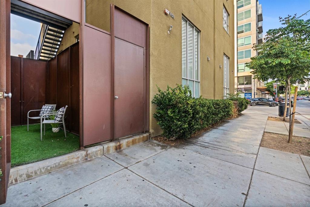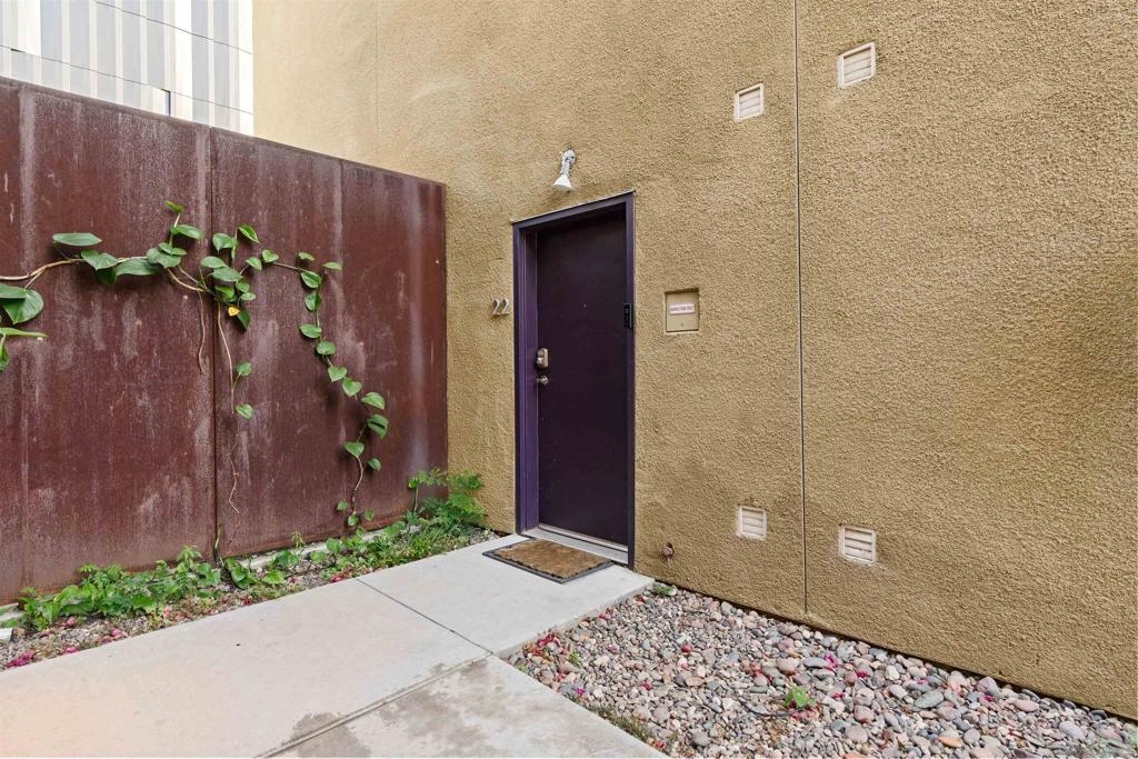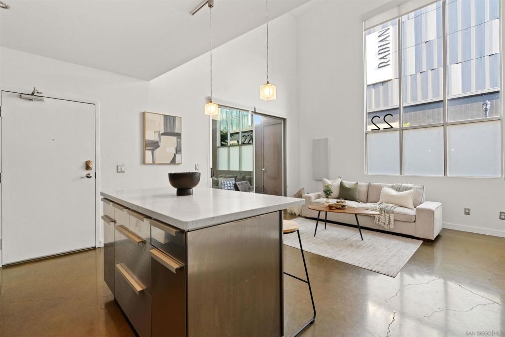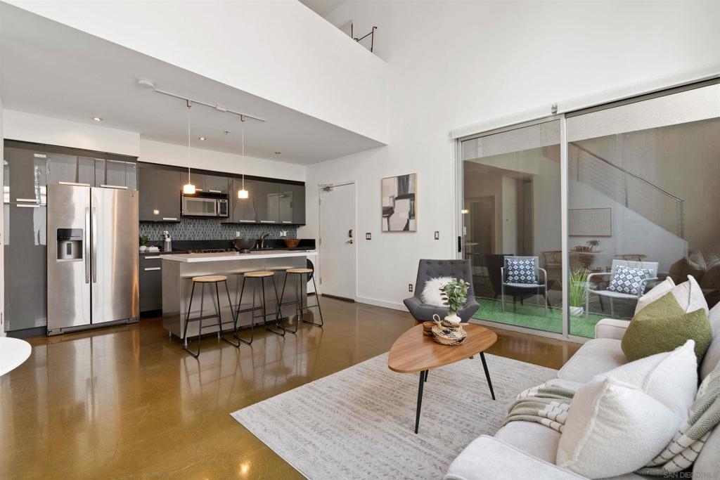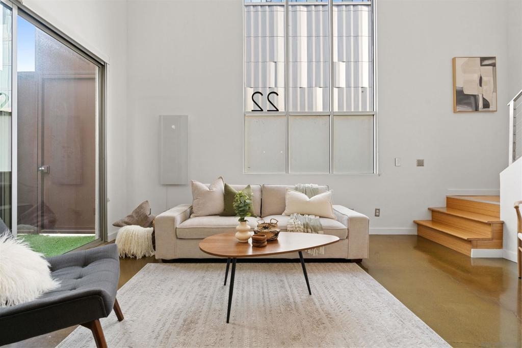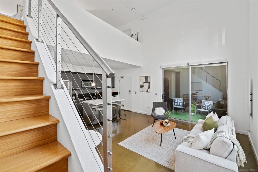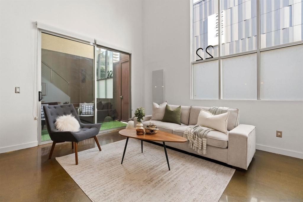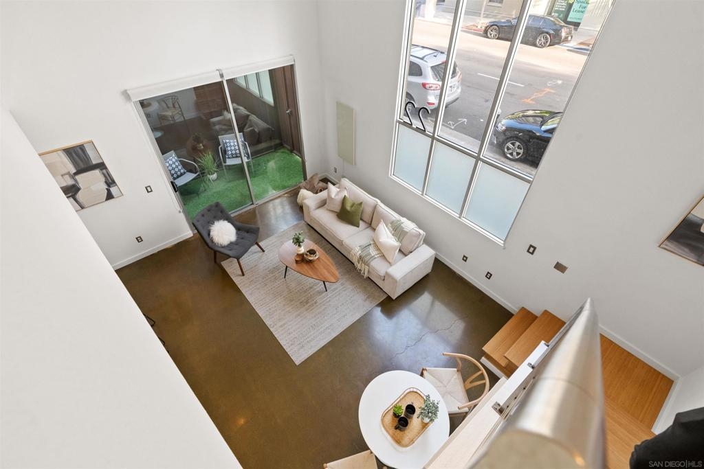 LOCATION, LOCATION, LOCATION! Urban living in the heart of East Village. This rare walk-up loft at Moto Villas—designed by award-winning architect Jonathan Segal—features 18-foot ceilings, south-facing windows, and a spacious, open layout filled with natural light. The home includes a private street-level entrance, enclosed patio, remodeled kitchen and bath, in-unit laundry, fresh paint, and a new smart-controlled Solus heater. Moto Villas is a boutique community offering low HOA dues (LOWEST HOA FEES in any downtown community!) and assigned parking. Located steps from Petco Park, grocery stores, cafes, and more—this is downtown living with style, efficiency, and unbeatable convenience.