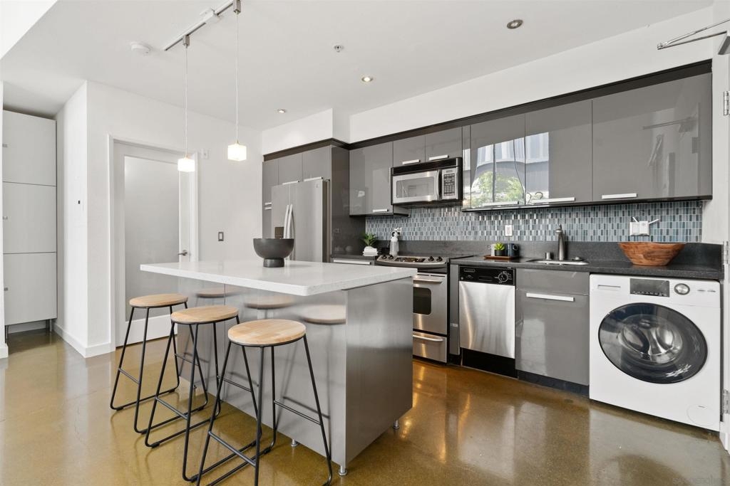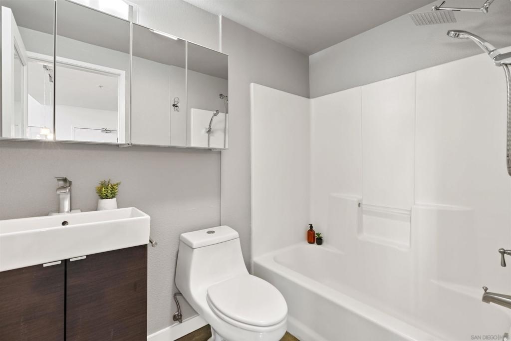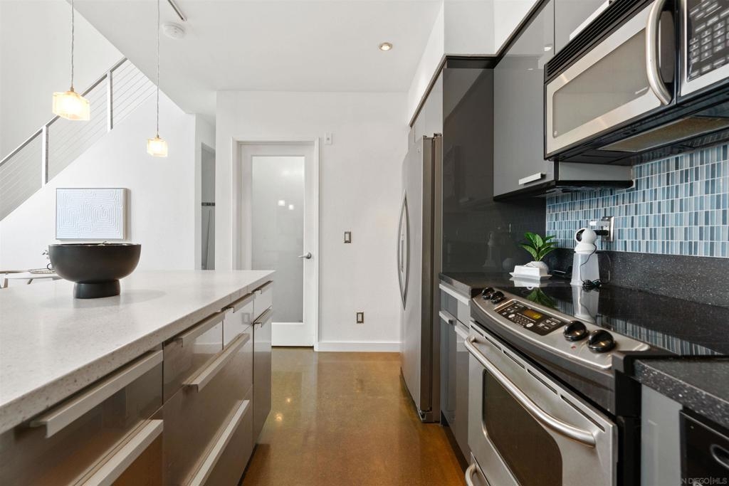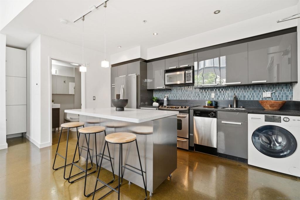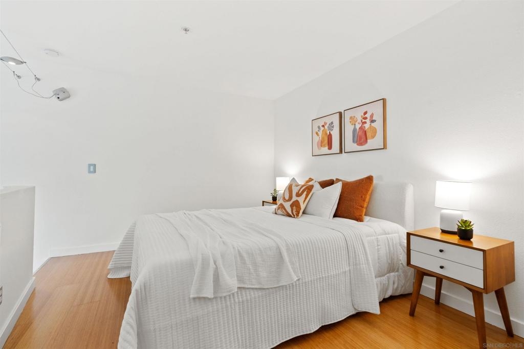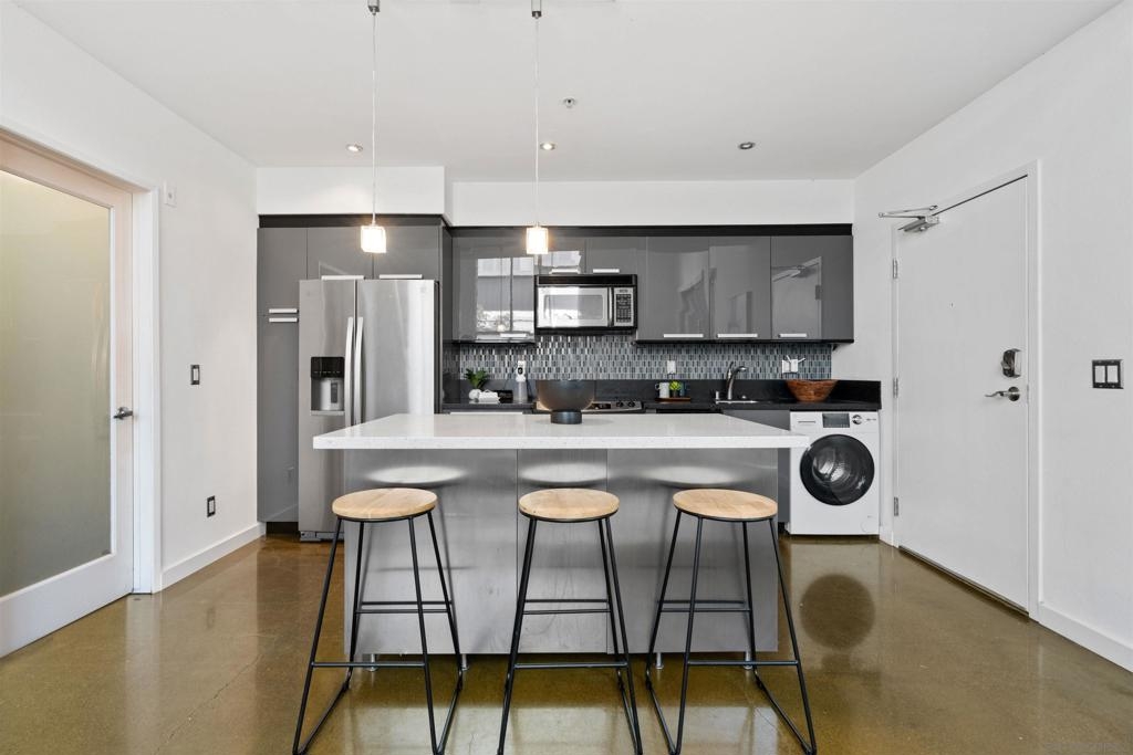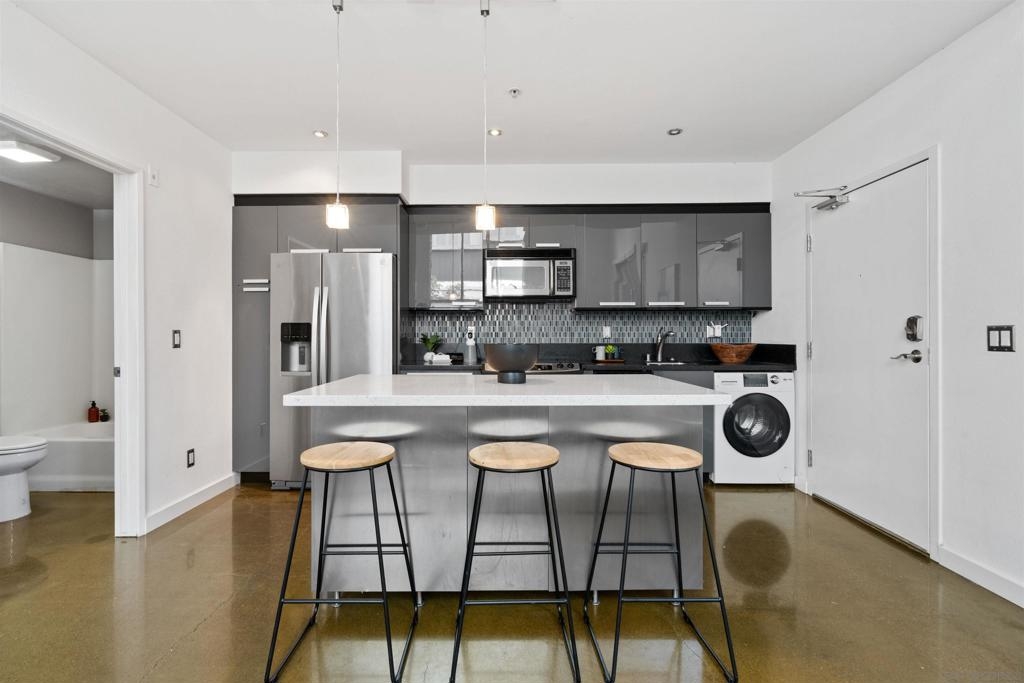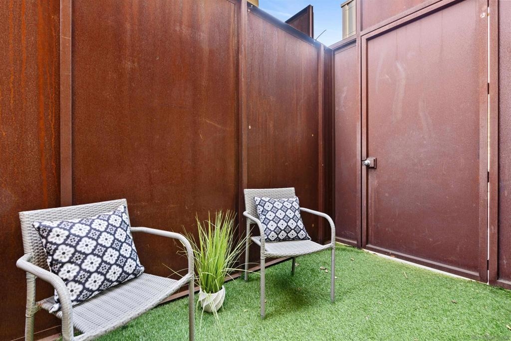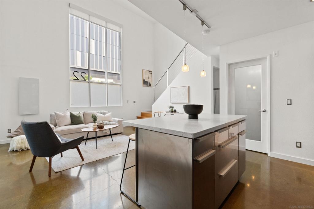 LOCATION, LOCATION, LOCATION! Urban living in the heart of East Village. This rare walk-up loft at Moto Villas—designed by award-winning architect Jonathan Segal—features 18-foot ceilings, south-facing windows, and a spacious, open layout filled with natural light. The home includes a private street-level entrance, enclosed patio, remodeled kitchen and bath, in-unit laundry, fresh paint, and a new smart-controlled Solus heater. Moto Villas is a boutique community offering low HOA dues (LOWEST HOA FEES in any downtown community!) and assigned parking. Located steps from Petco Park, grocery stores, cafes, and more—this is downtown living with style, efficiency, and unbeatable convenience.