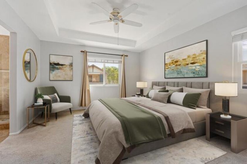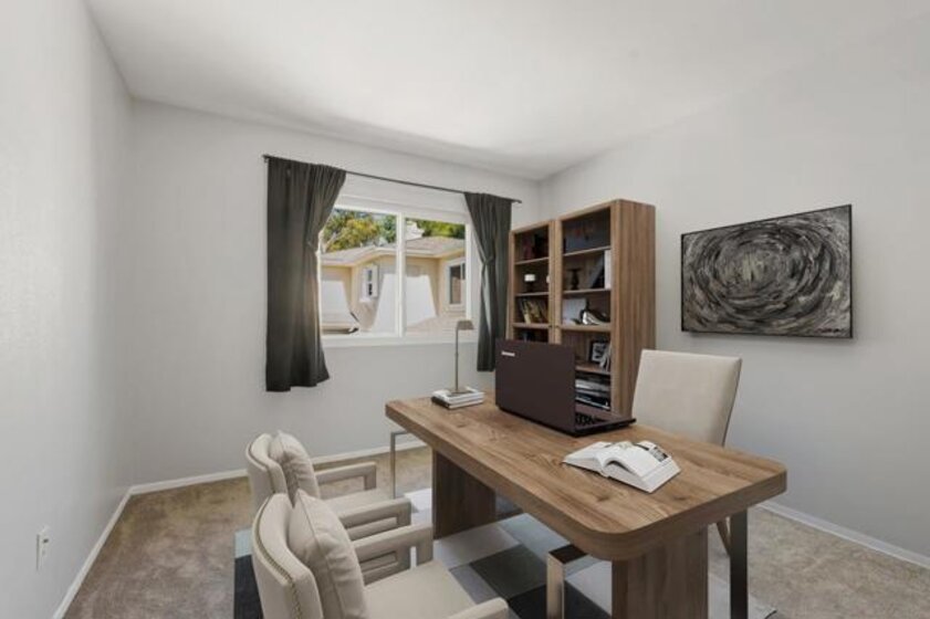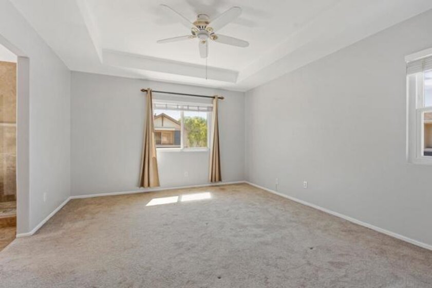 Hampton Place townhouse in the desirable community of Stonecrest Village. The open floor plan flows beautifully from the living room into the dining room and kitchen. Art collectors rejoice, this freshly painted, spacious 1411 sq ft 3-bedroom, 2.5 bath home is waiting for your art to bring it to life. Move-in ready. All bedrooms and the laundry are located upstairs. Primary suite with fabulous walk-in closet. Stonecrest amenities include pool, spa, clubhouse, tennis courts, parks, trails, and a playground. The patio has been cleaned and the fence painted since the photos were taken.