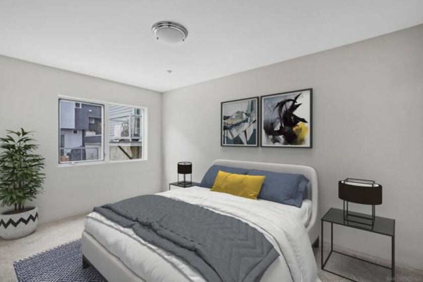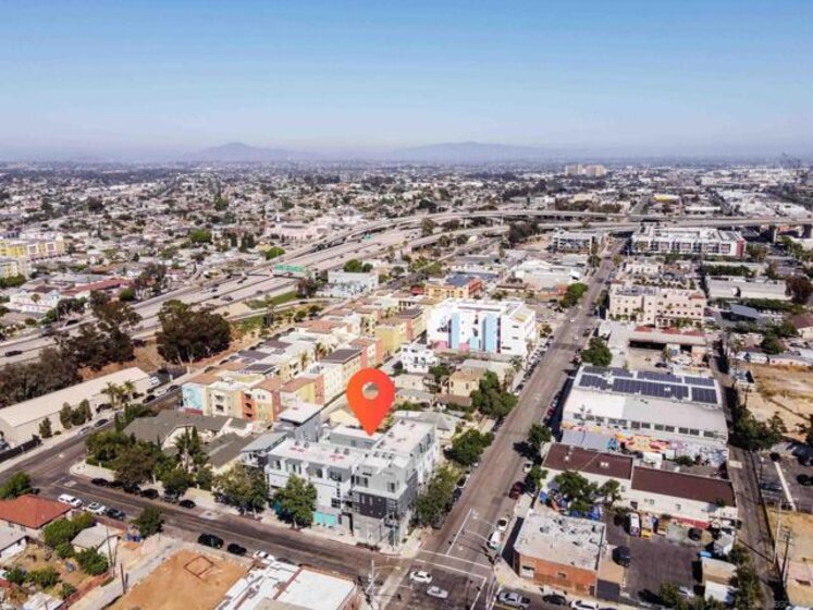 VA APPROVED! Located just 2 blocks from Downtown San Diego, this two bedroom (with optional 3rd) live-work townhouse is unlike anything on the market. Enter the gated complex from your own private two-car stacked garage (with power lift) and head to your industrial two-story loft townhouse that shares no walls or floors with anyone else in the complex, giving you unprecedented privacy in the city. Inside you're greeted by incredible modern design and abundant natural light. The large and well-appointed kitchen is the perfect space to entertain before heading out for dinner and drinks. The downstairs bedroom has dual walk-in closets and its own en-suite bathroom, finished in seductive black and white tiles. Adjacent to the kitchen you'll find a half bath perfect for guests while entertaining. Enjoy views of the Coronado Bridge from multiple rooms and the upstairs balcony. The primary bedroom along with its walk-in closet and bathroom are enormous. Keep the upstairs loft as another living space or use it as a third bedroom; the choice is yours. Laundry in-unit! Walking distance to many restaurants, breweries, Petco Park, San Diego Harbor, the Rady Shell, and downtown San Diego. Barrio Logan has quickly become one of the trendiest, most vibrant neighborhoods in all of San Diego with its rich history, colorful murals, fantastic food, and abundant entertainment. Invest here before it's too late! This truly is an excellent property and must be seen to be appreciated. Some photos virtually staged.