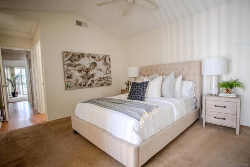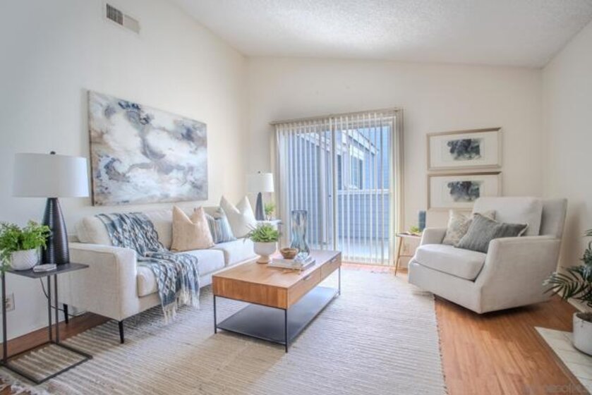 Welcome to this desirable upper-level 2-bedroom, 2-bath condo in the heart of Mira Mesa! Perfectly located with quick access to the 15 freeway, this home offers unbeatable convenience near Miramar College, UCSD, shopping, dining, and major employment hubs. This light and bright upper unit features a functional floor plan with well-separated bedrooms—ideal for roommates, guests, or a home office setup. Enjoy your private patio deck, perfect for relaxing evenings or morning coffee. The unit includes a detached 1-car garage plus one assigned parking space conveniently located near the home—rare and highly desirable for the area. The community offers a sparkling pool and jacuzzi, providing a resort-style feel right at home. Whether you’re a first-time buyer, investor, or looking for low-maintenance living in a prime central San Diego location, this condo checks all the boxes.